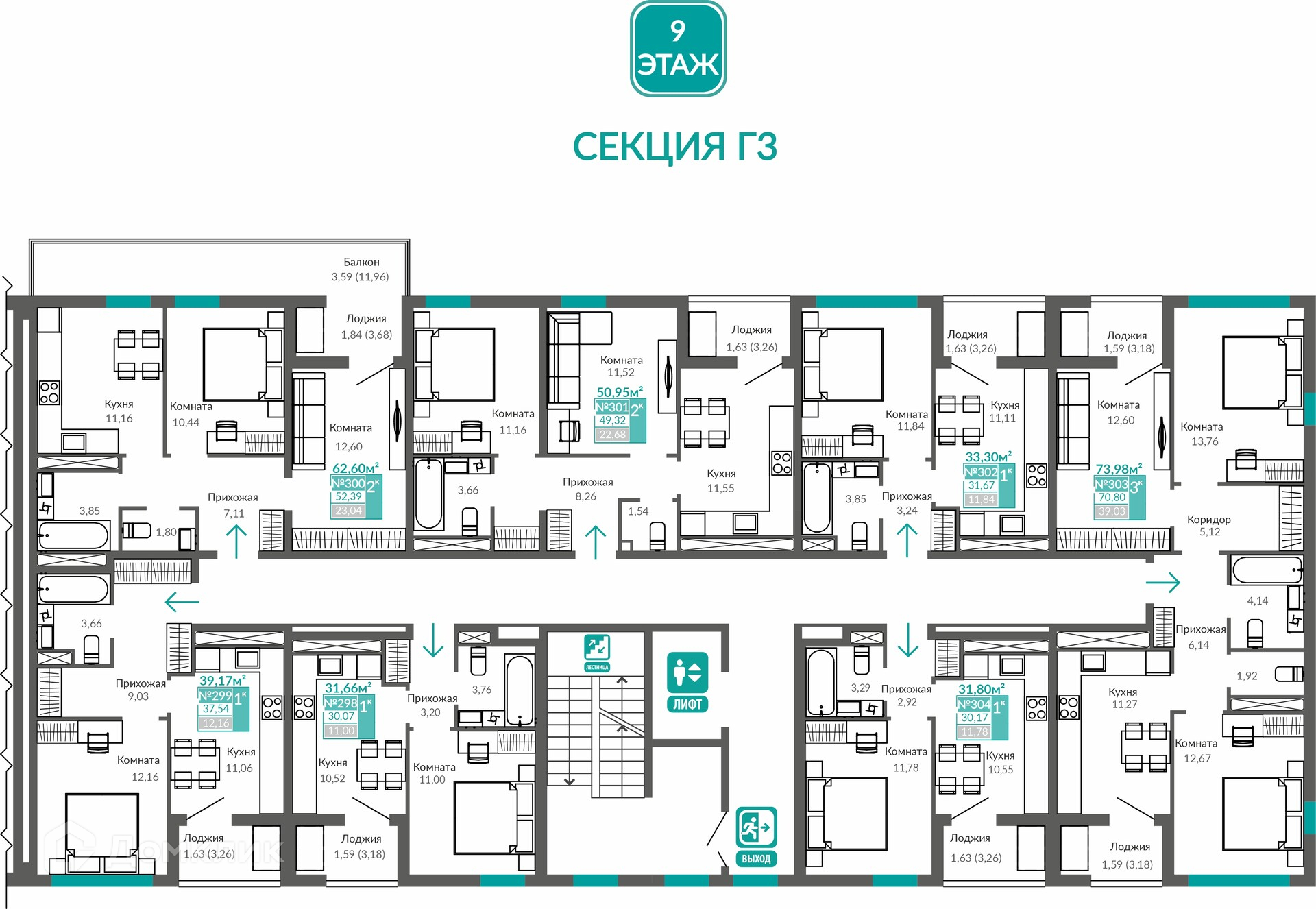 Площади квартир