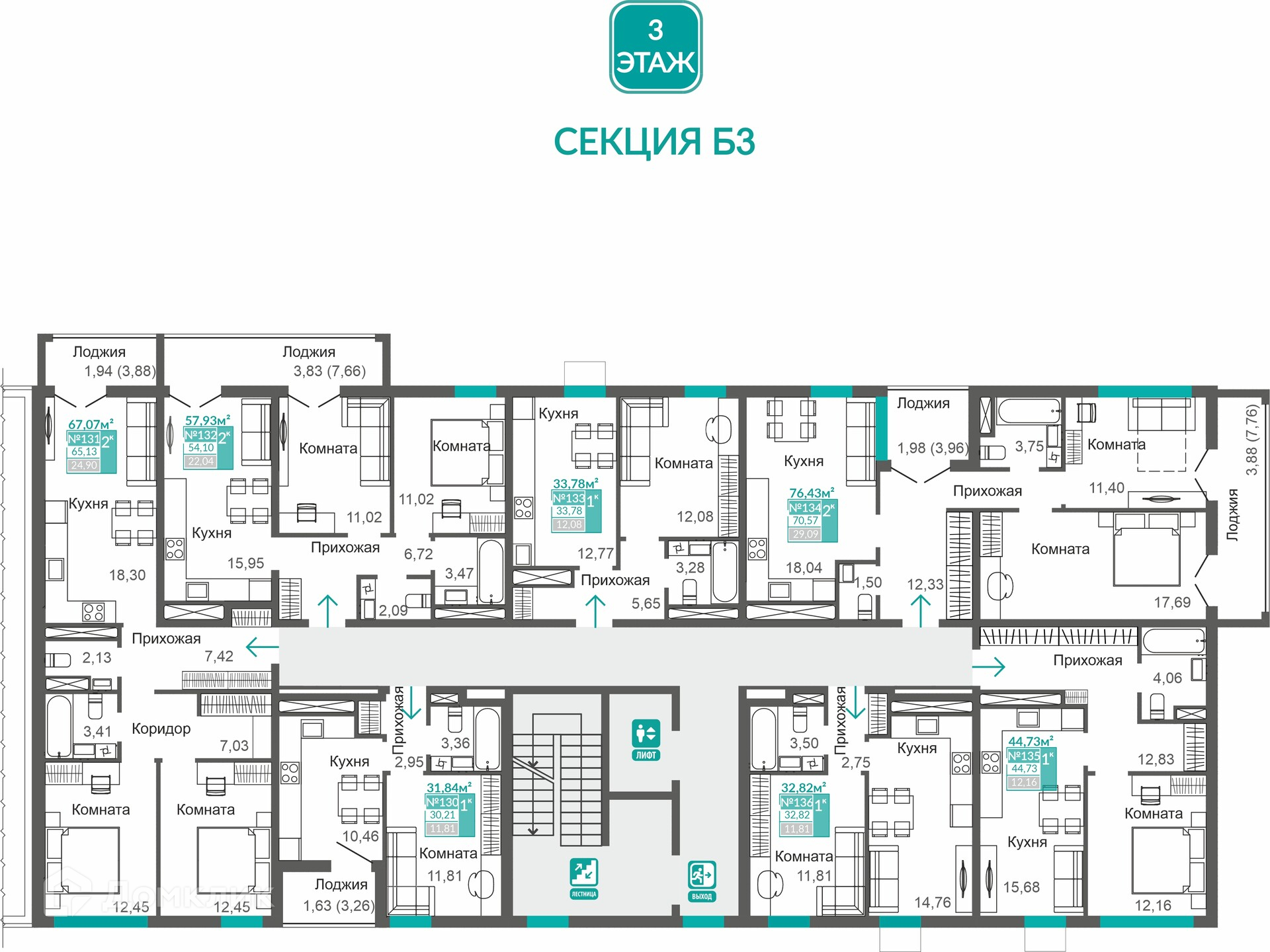 Площади квартир