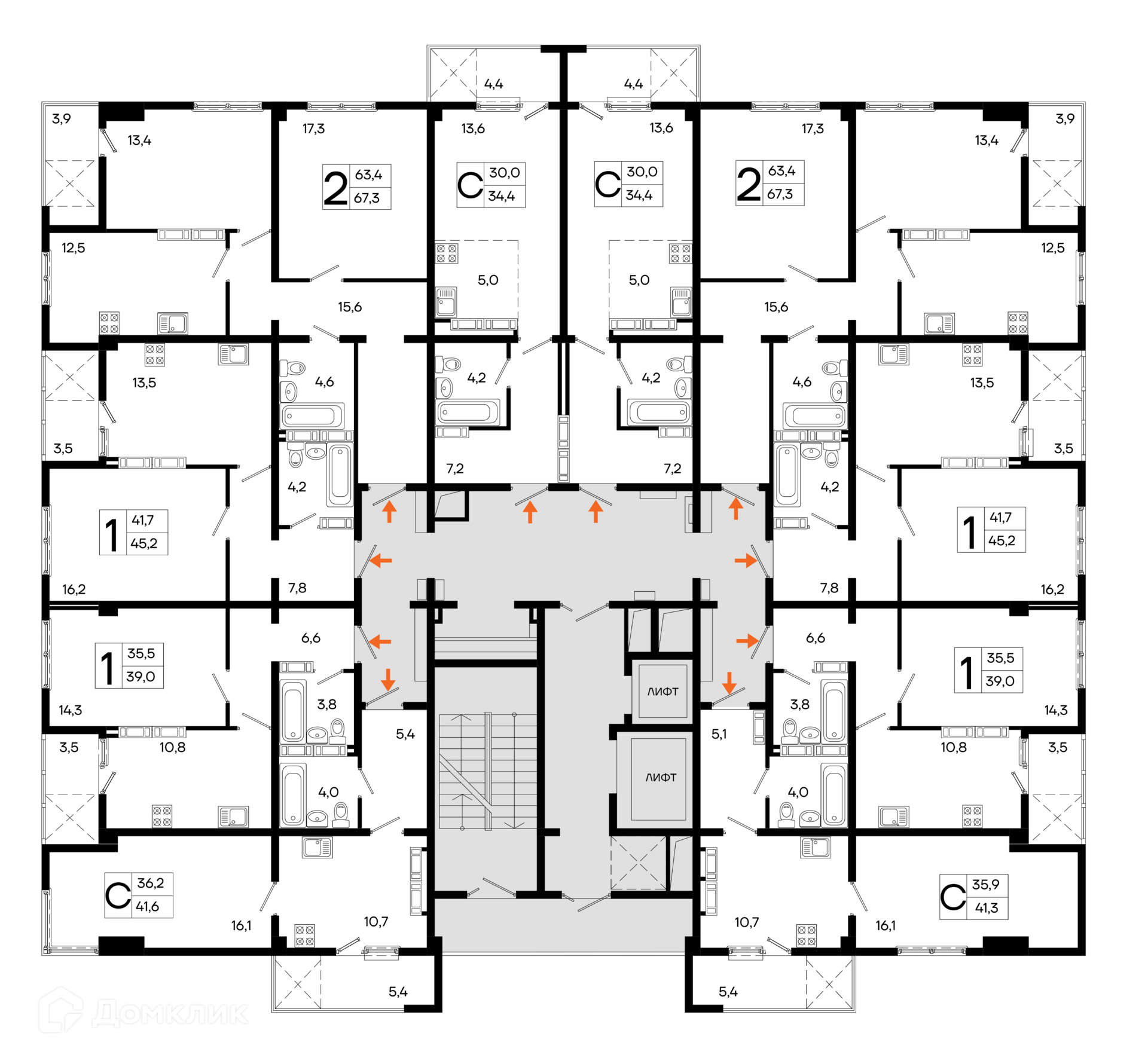 Площади квартир