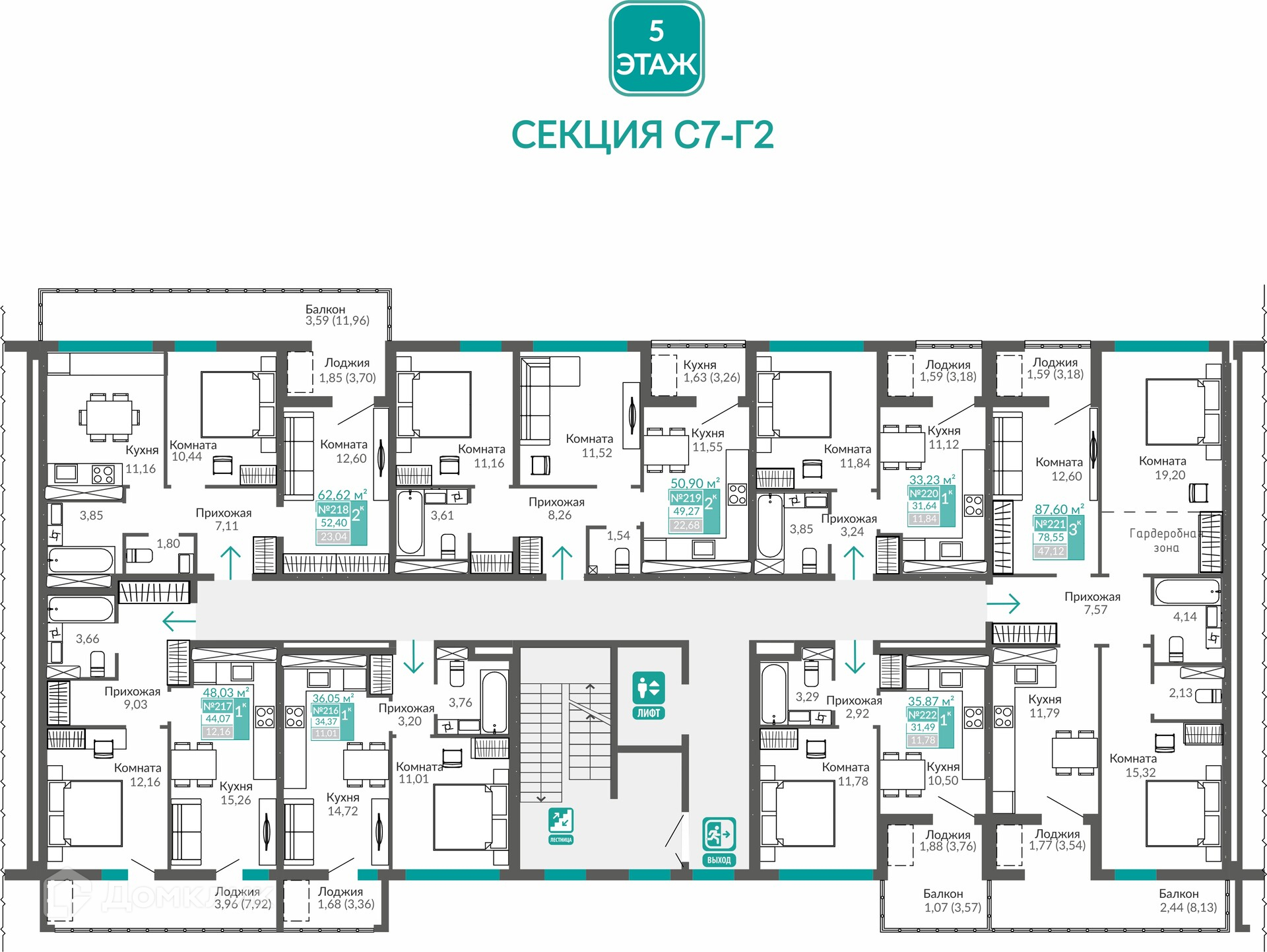 Площади квартир