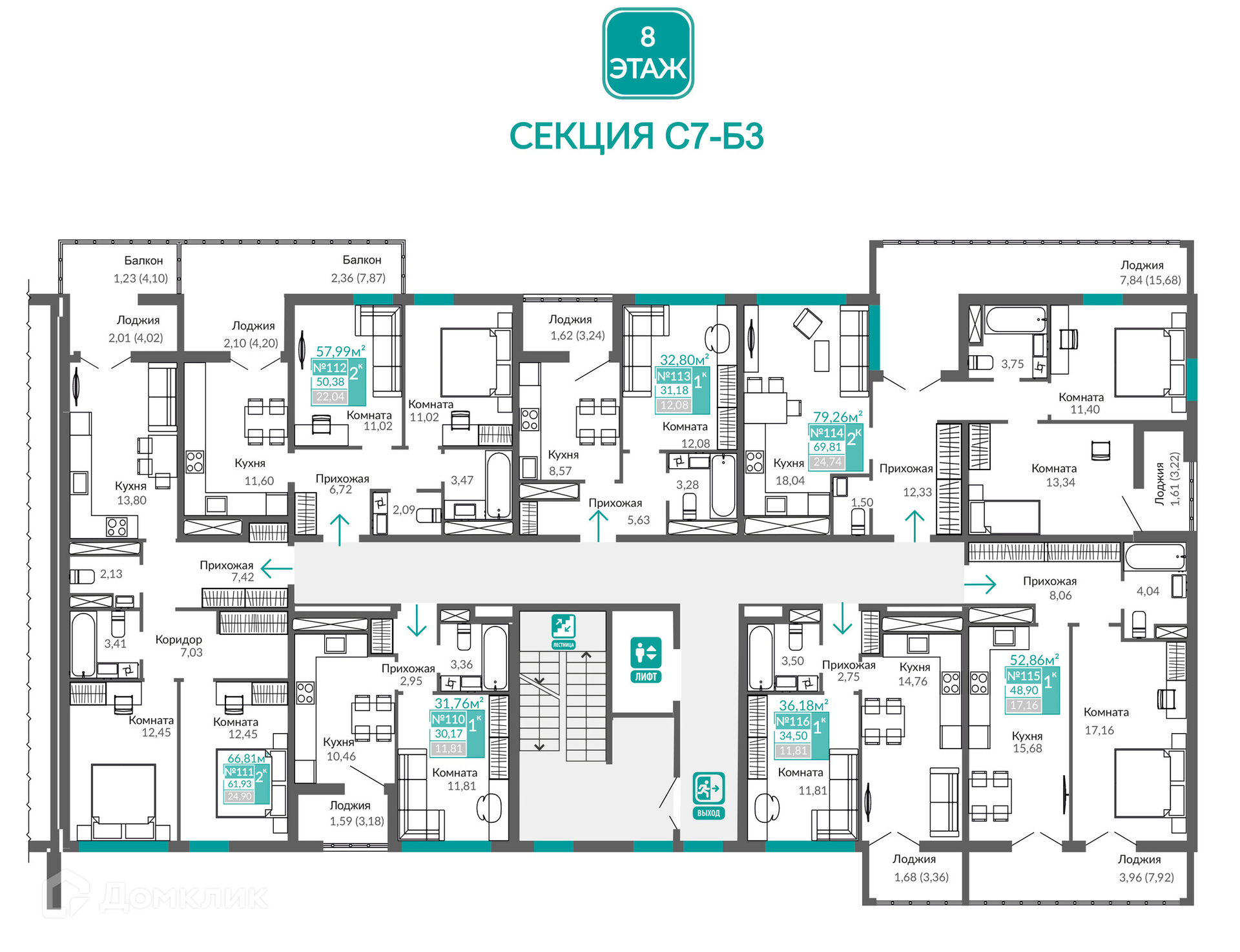 Площади квартир