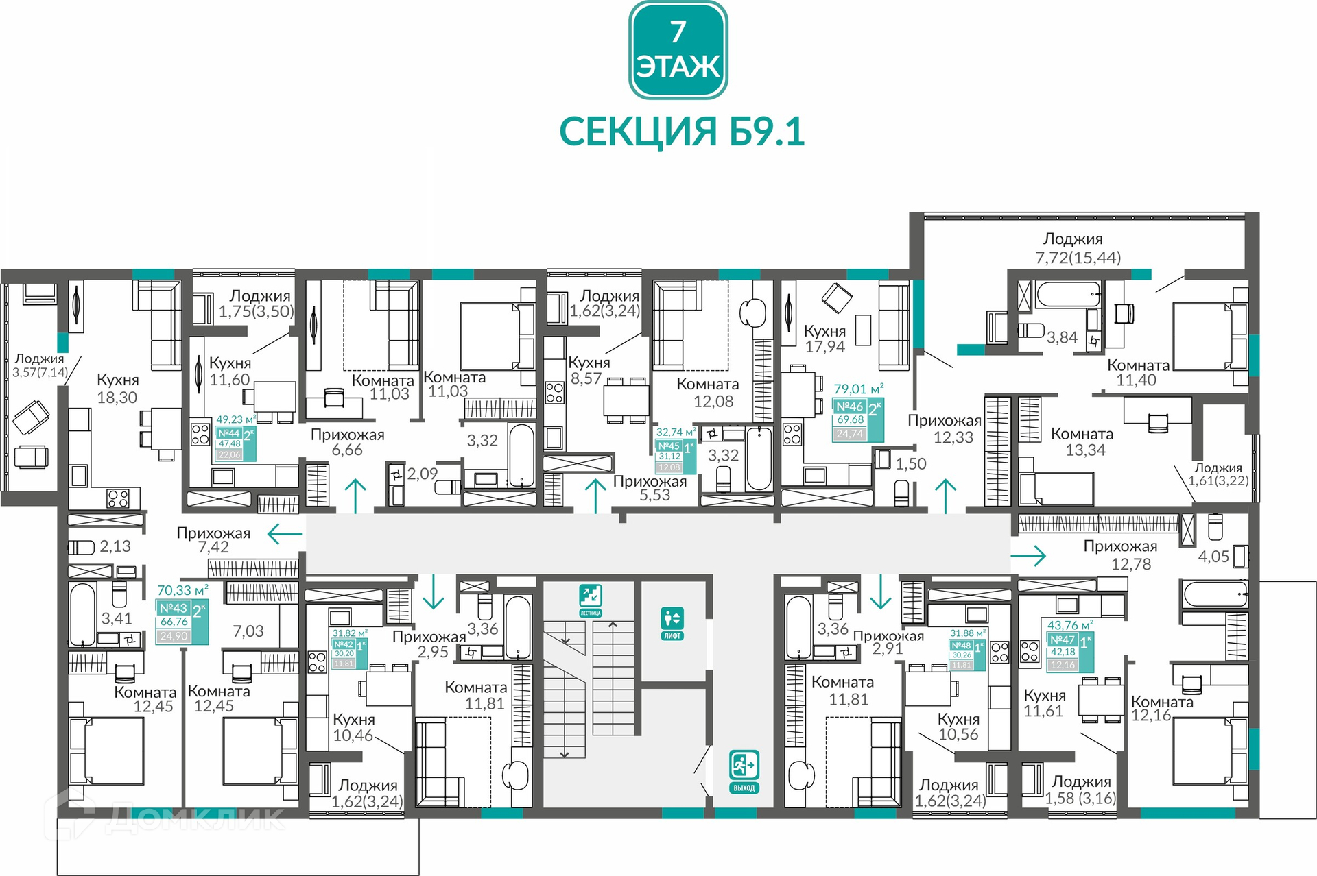 Площади квартир
