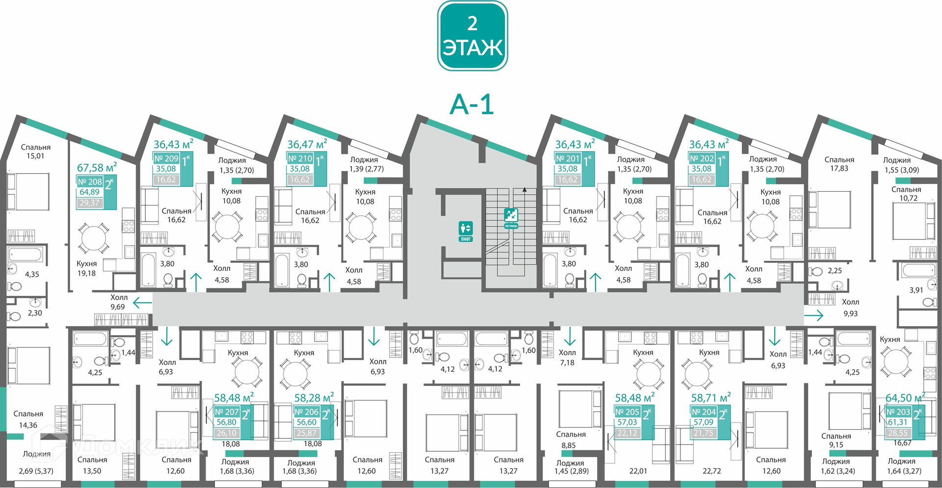 Площади квартир