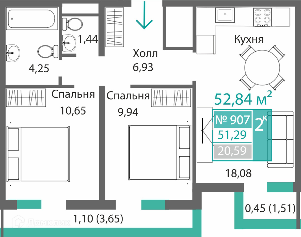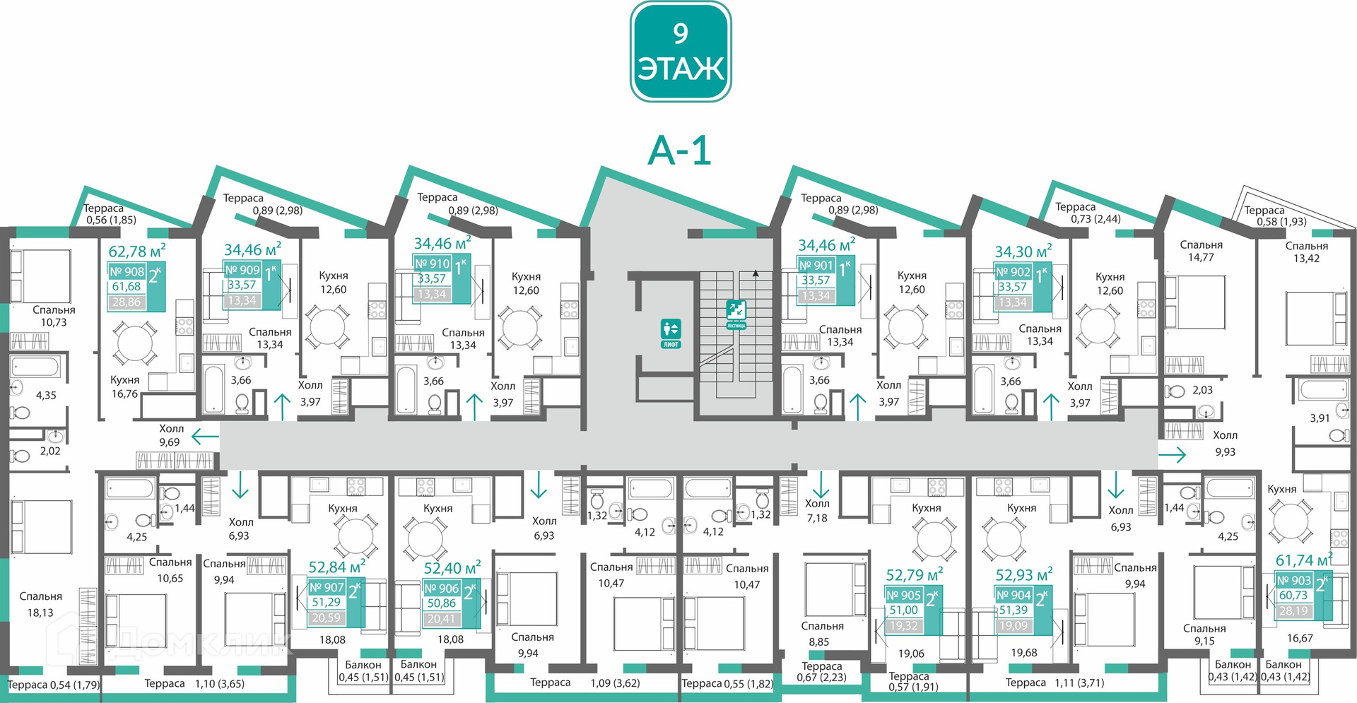 Площади квартир