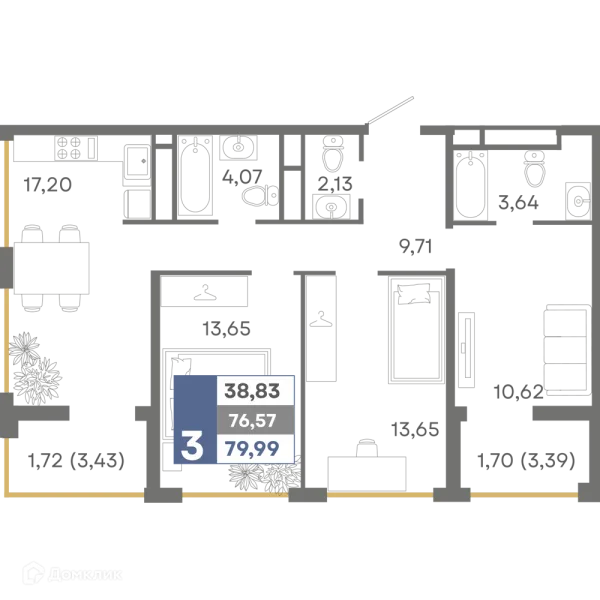 3 комн. квартира в Симферополе в ипотеку от 86 188 руб/месяц