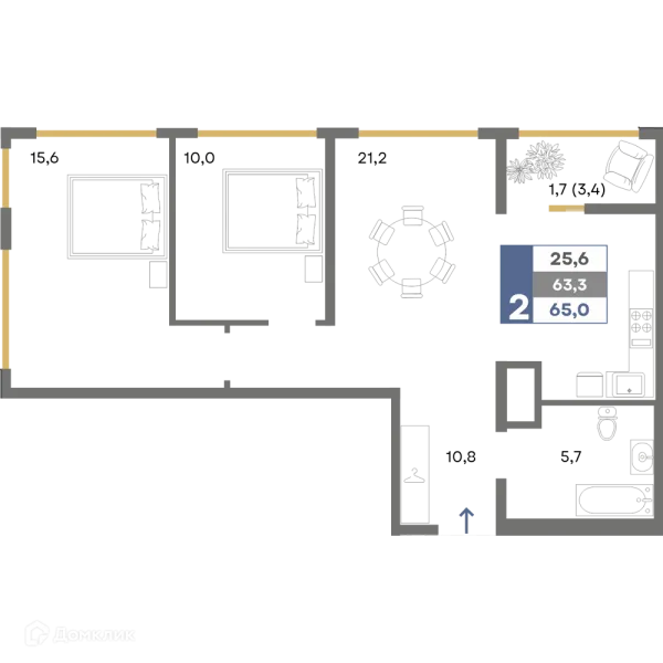 2 комн. квартира в Симферополе в ипотеку от 64 593 руб/месяц
