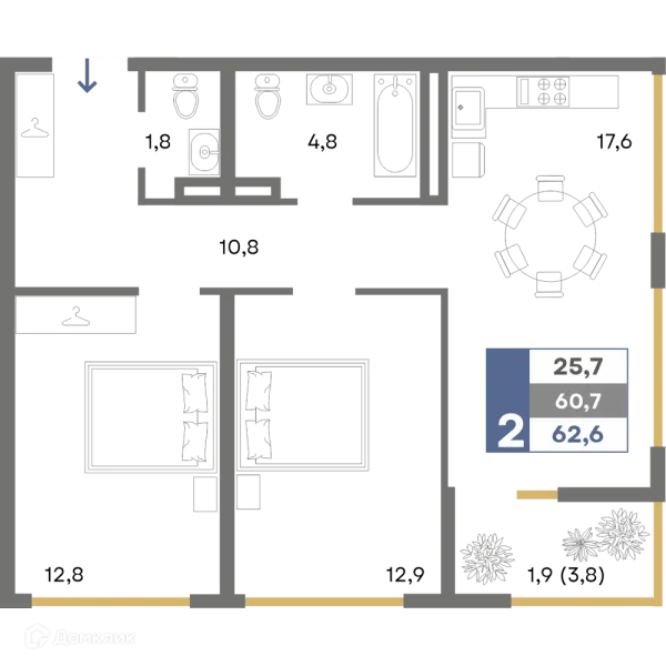 2 комн. квартира в Симферополе в ипотеку от 64 184 руб/месяц