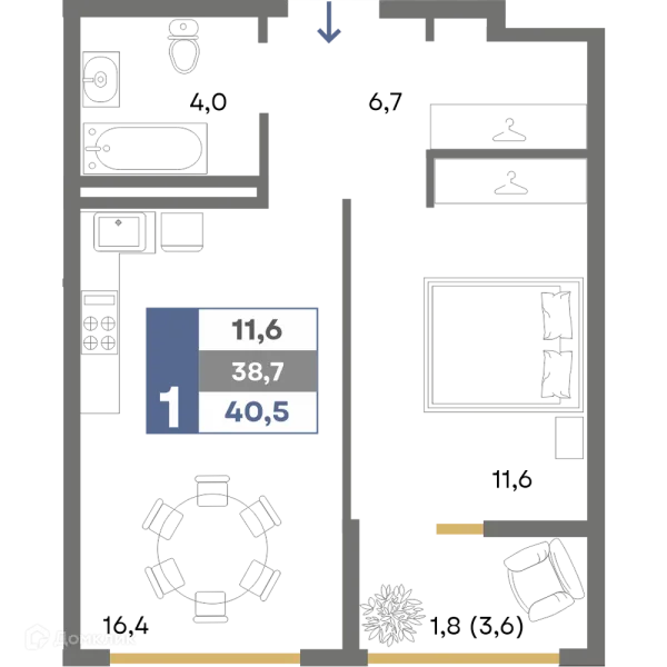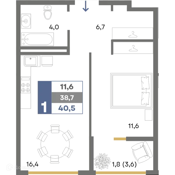 1 комн. квартира в Симферополе в ипотеку от 49 301 руб/месяц
