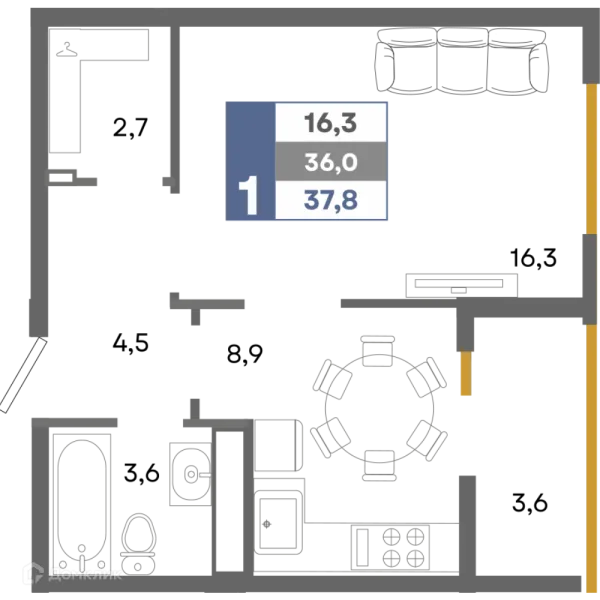 1 комн. квартира в Симферополе в ипотеку от 50 263 руб/месяц