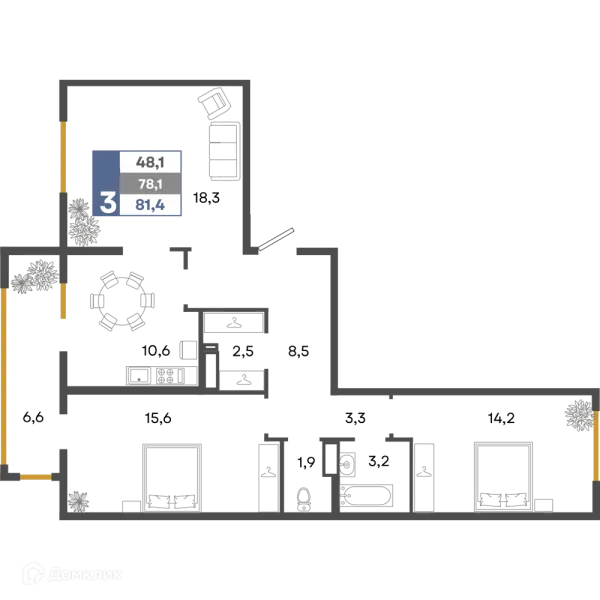 3 комн. квартира в Симферополе в ипотеку от 78 701 руб/месяц