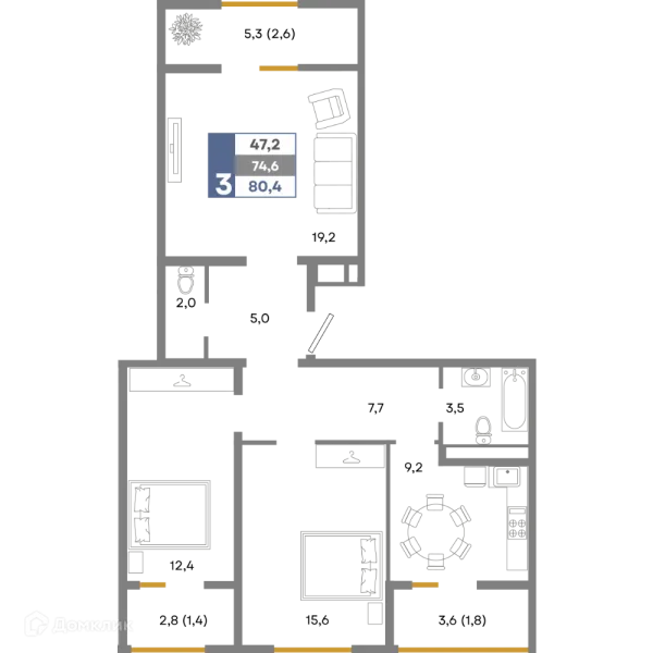 3 комн. квартира в Симферополе в ипотеку от 75 532 руб/месяц