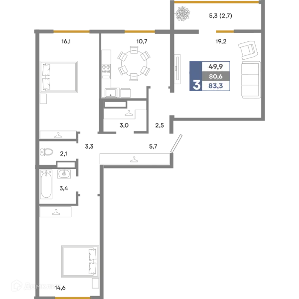 3 комн. квартира в Симферополе в ипотеку от 77 590 руб/месяц