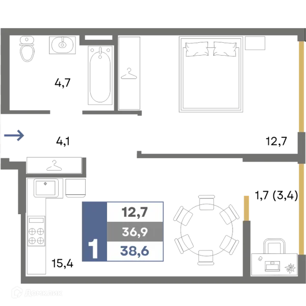1 комн. квартира в Симферополе в ипотеку от 47 208 руб/месяц
