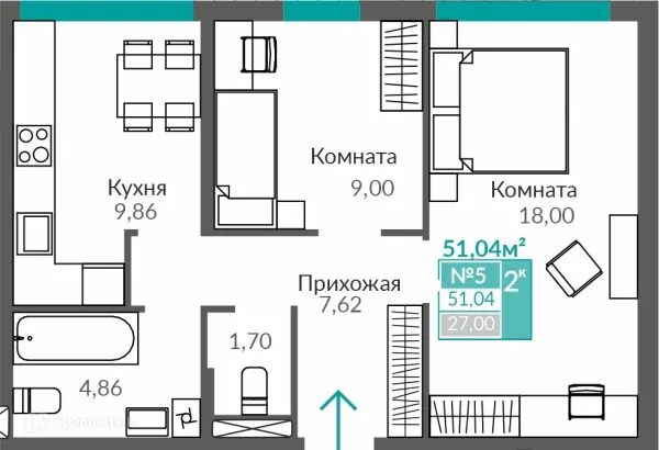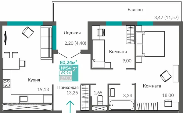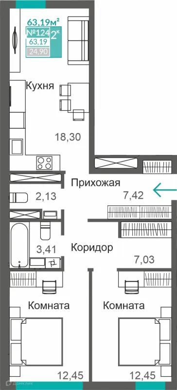 2 комн. квартира в Симферополе в ипотеку от 69 259 руб/месяц