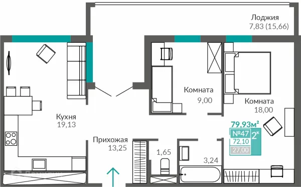 2 комн. квартира в Симферополе в ипотеку от 72 060 руб/месяц