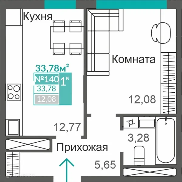 1 комн. квартира в Симферополе в ипотеку от 42 176 руб/месяц
