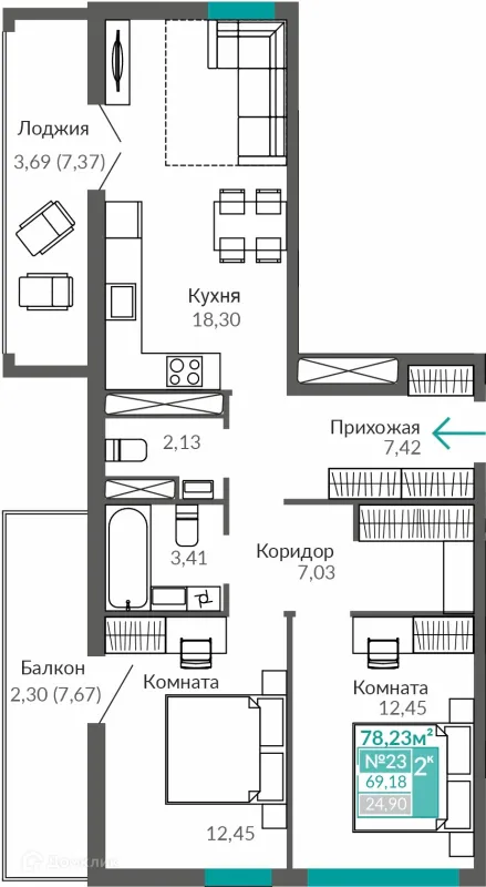 2 комн. квартира в Симферополе в ипотеку от 74 962 руб/месяц