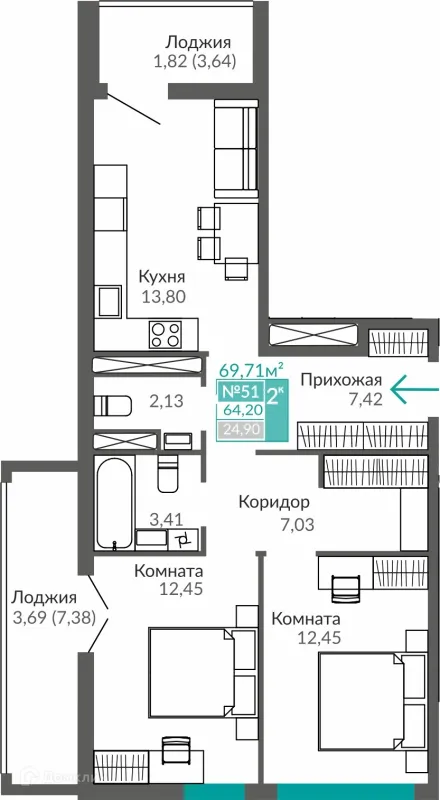 2 комн. квартира в Симферополе в ипотеку от 81 155 руб/месяц