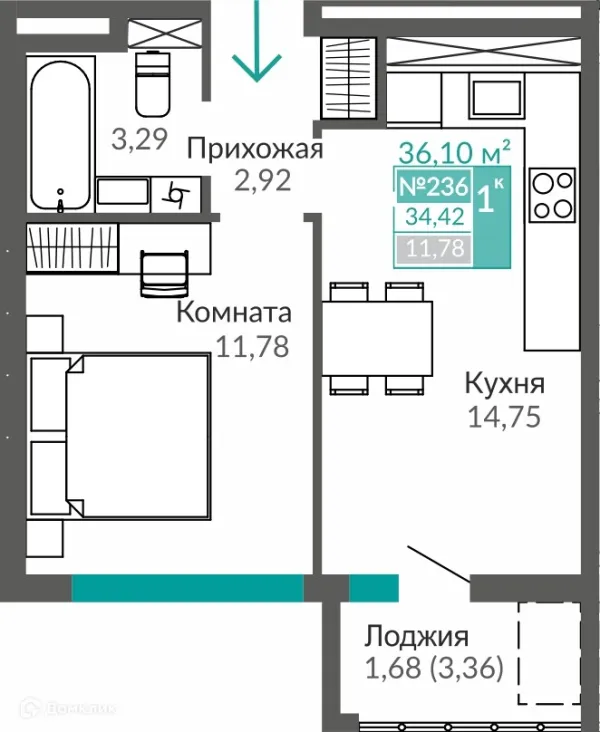1 комн. квартира в Симферополе в ипотеку от 41 146 руб/месяц