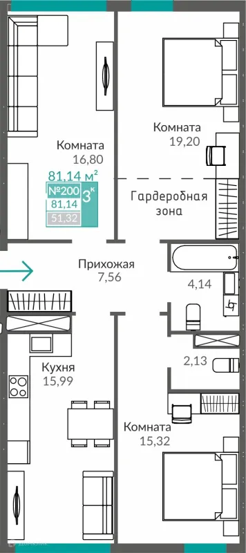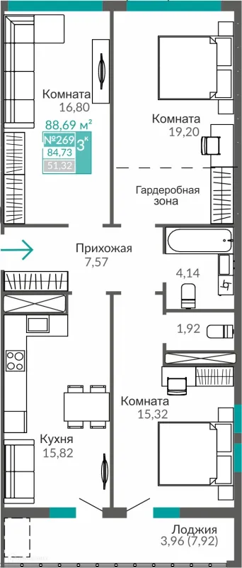 3 комн. квартира в Симферополе в ипотеку от 86 332 руб/месяц