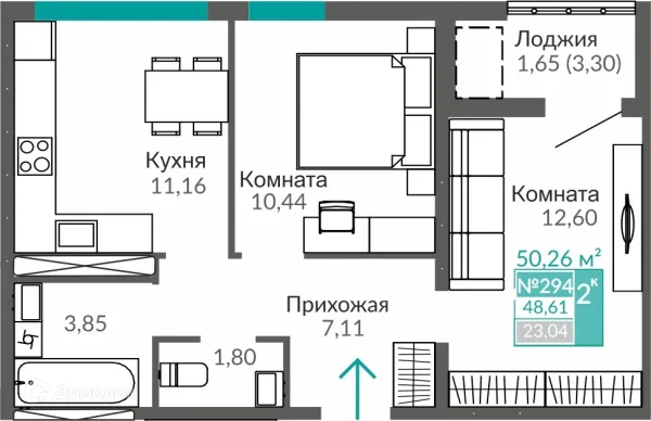 2 комн. квартира в Симферополе в ипотеку от 58 623 руб/месяц