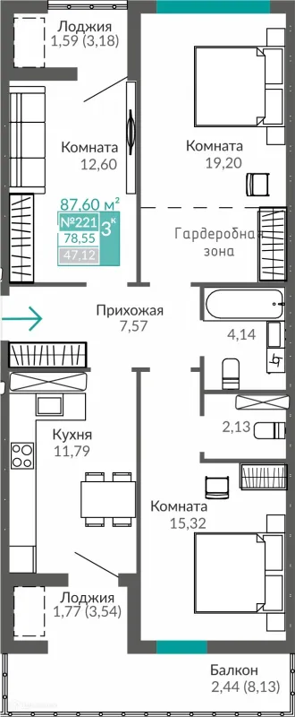3 комн. квартира в Симферополе в ипотеку от 85 087 руб/месяц