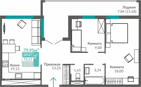 2 комн. квартира в Симферополе в ипотеку от 59 365 руб/месяц