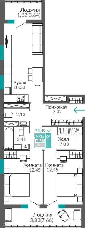 2 комн. квартира в Симферополе в ипотеку от 66 270 руб/месяц