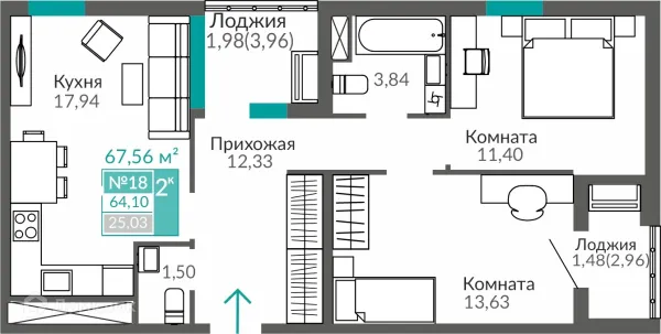2 комн. квартира в Симферополе в ипотеку от 70 260 руб/месяц