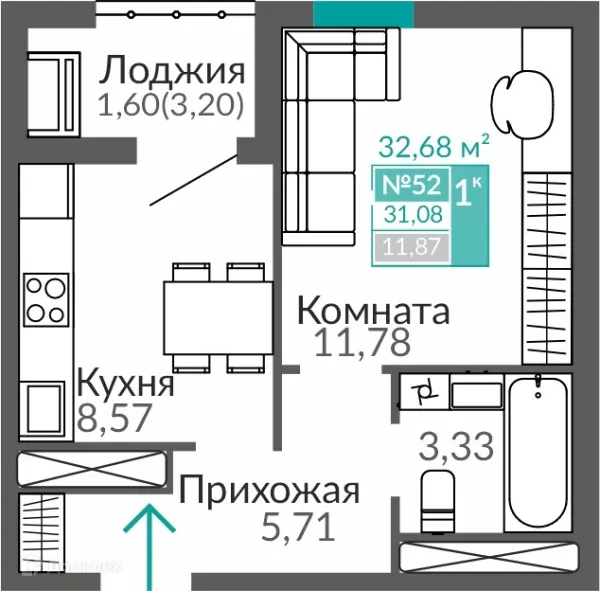 1 комн. квартира в Симферополе в ипотеку от 39 303 руб/месяц