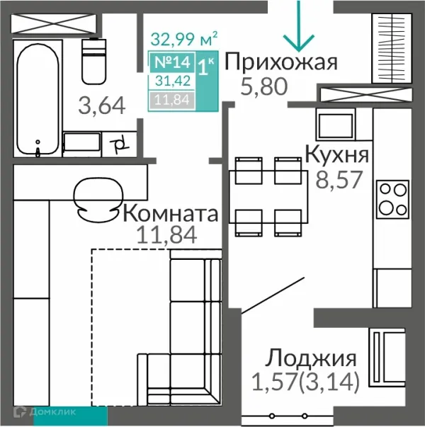 1 комн. квартира в Симферополе в ипотеку от 39 425 руб/месяц