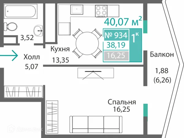 1 комн. квартира в Симферополе в ипотеку от 51 040 руб/месяц