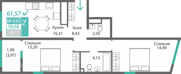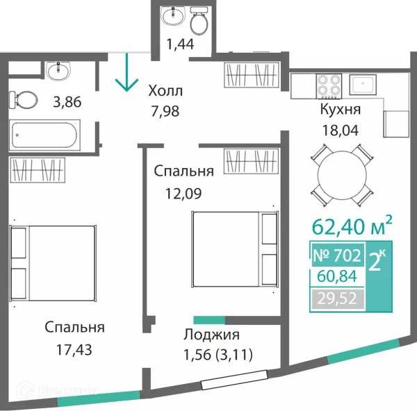 2 комн. квартира в Симферополе в ипотеку от 64 542 руб/месяц
