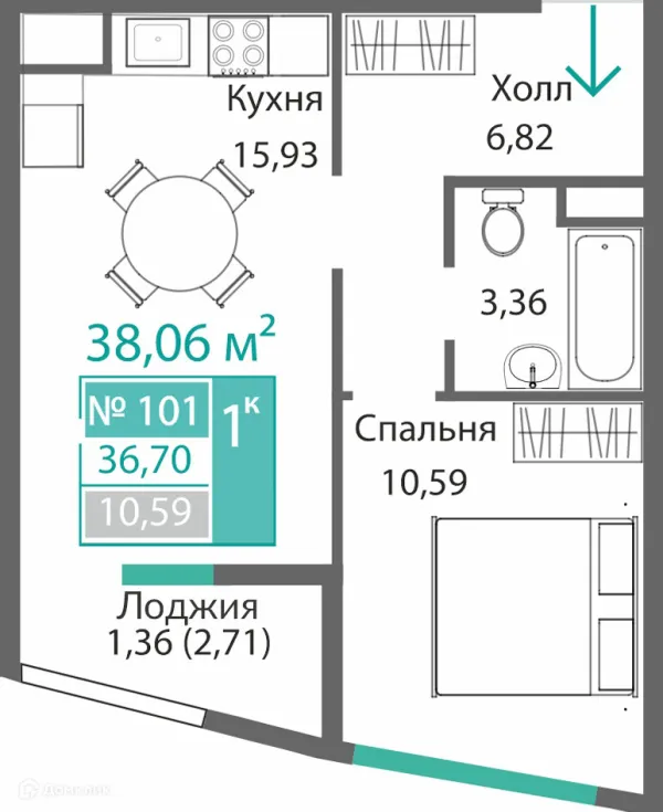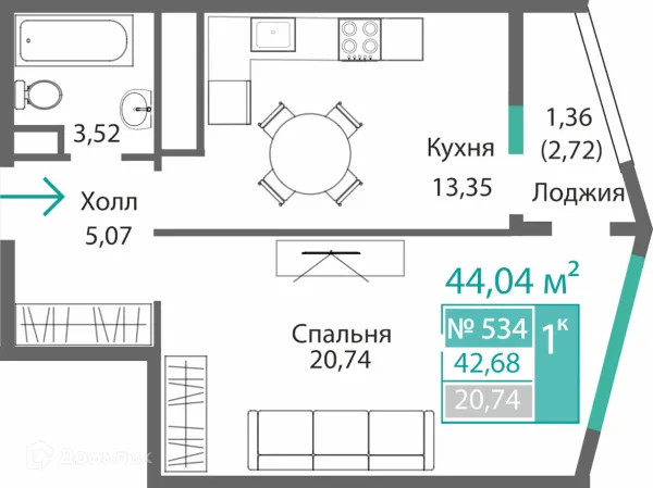 1 комн. квартира в Симферополе в ипотеку от 50 954 руб/месяц