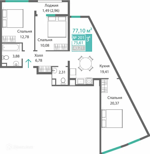 3 комн. квартира в Симферополе в ипотеку от 75 848 руб/месяц