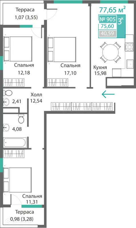 3 комн. квартира в Симферополе в ипотеку от 75 020 руб/месяц