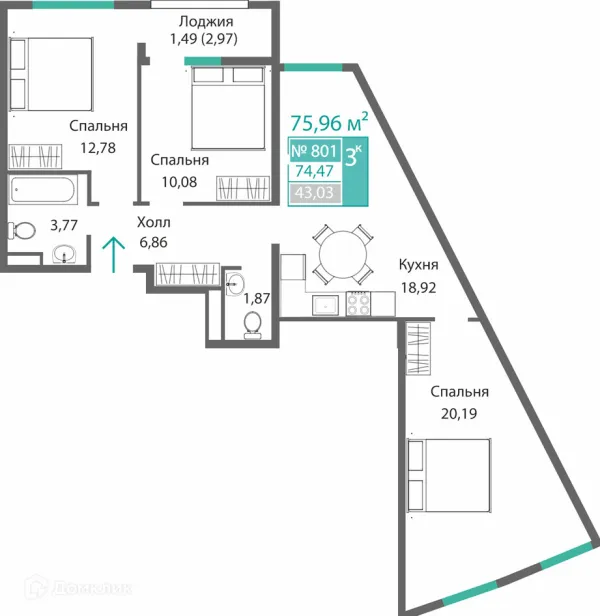 3 комн. квартира в Симферополе в ипотеку от 76 186 руб/месяц