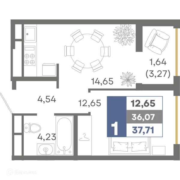 1 комн. квартира в Симферополе в ипотеку от 56 790 руб/месяц