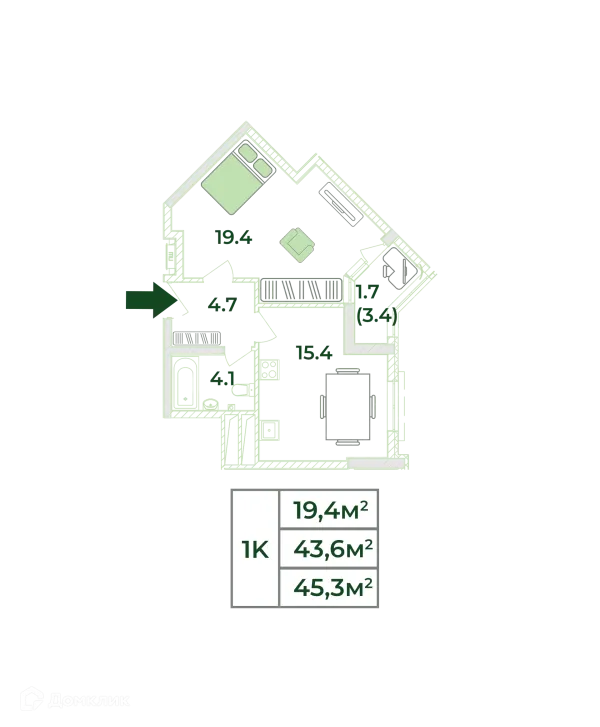 1 комн. квартира в Симферополе в ипотеку от 44 271 руб/месяц