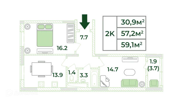2 комн. квартира в Симферополе в ипотеку от 77 945 руб/месяц
