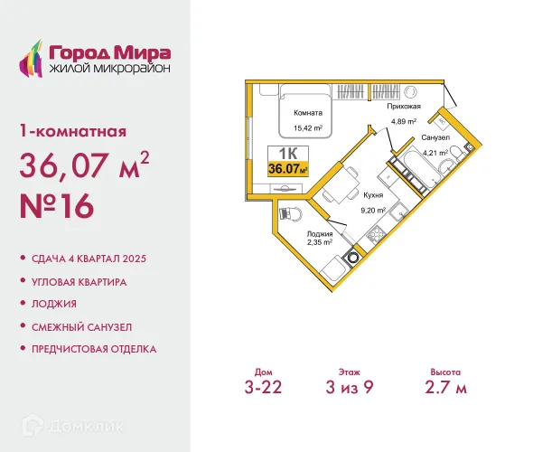 1 комн. квартира в Симферополе в ипотеку от 61 244 руб/месяц