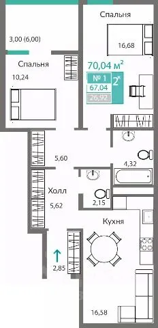 2 комн. квартира в Симферополе в ипотеку от 76 798 руб/месяц