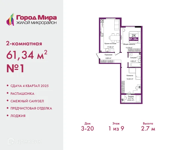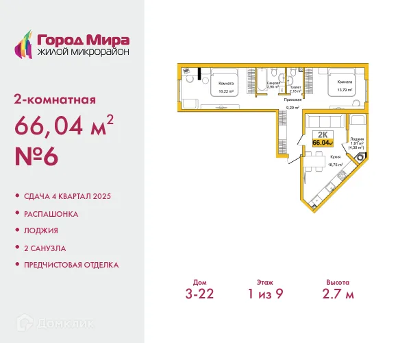 2 комн. квартира в Симферополе в ипотеку от 57 759 руб/месяц