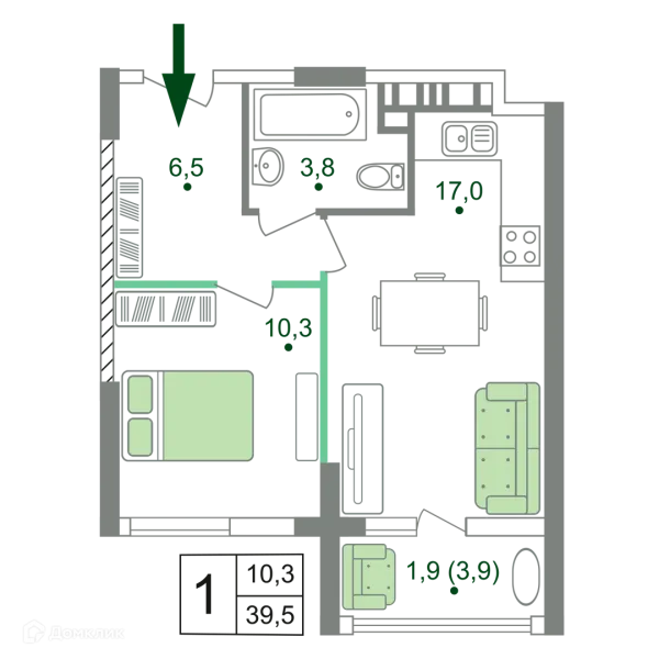 1 комн. квартира в Симферополе в ипотеку от 66 331 руб/месяц
