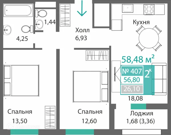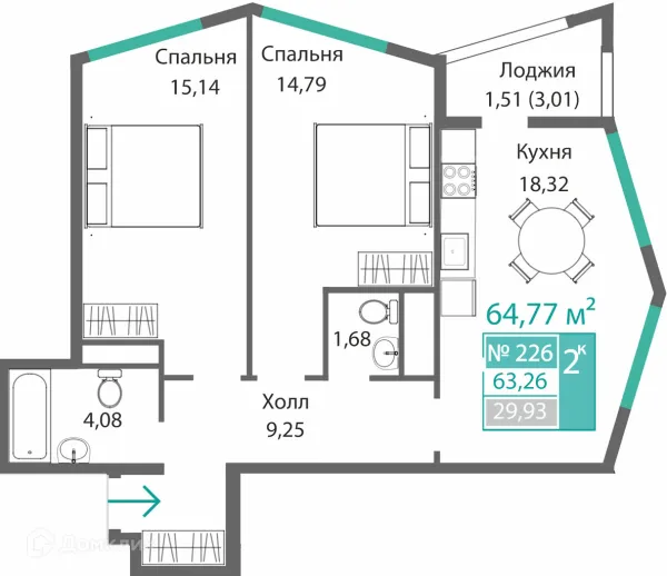 2 комн. квартира в Симферополе в ипотеку от 64 326 руб/месяц