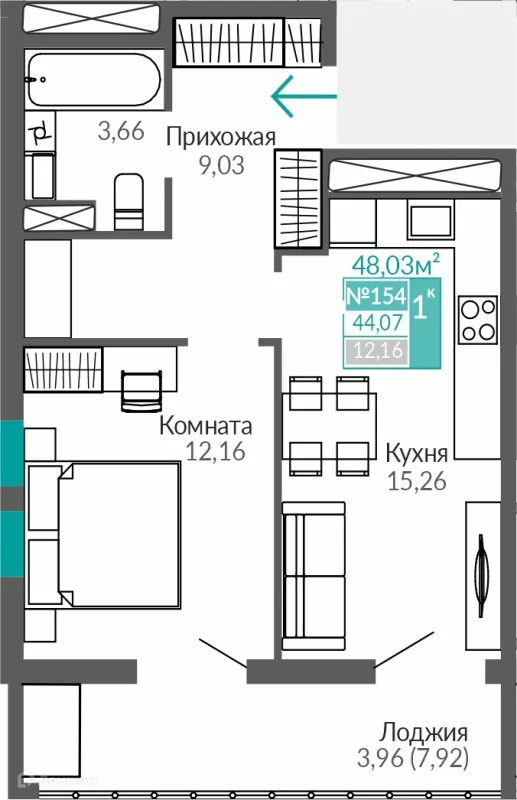 1 комн. квартира в Симферополе в ипотеку от 53 957 руб/месяц