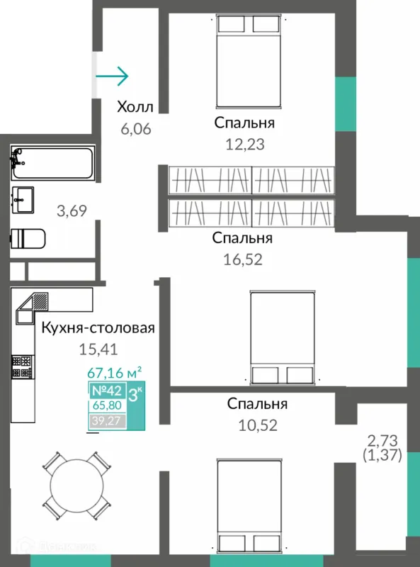 3 комн. квартира в Симферополе в ипотеку от 82 271 руб/месяц