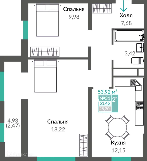 2 комн. квартира в Симферополе в ипотеку от 73 766 руб/месяц