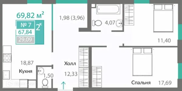 2 комн. квартира в Симферополе в ипотеку от 170 927 руб/месяц