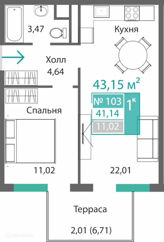 1 комн. квартира в Симферополе в ипотеку от 57 190 руб/месяц